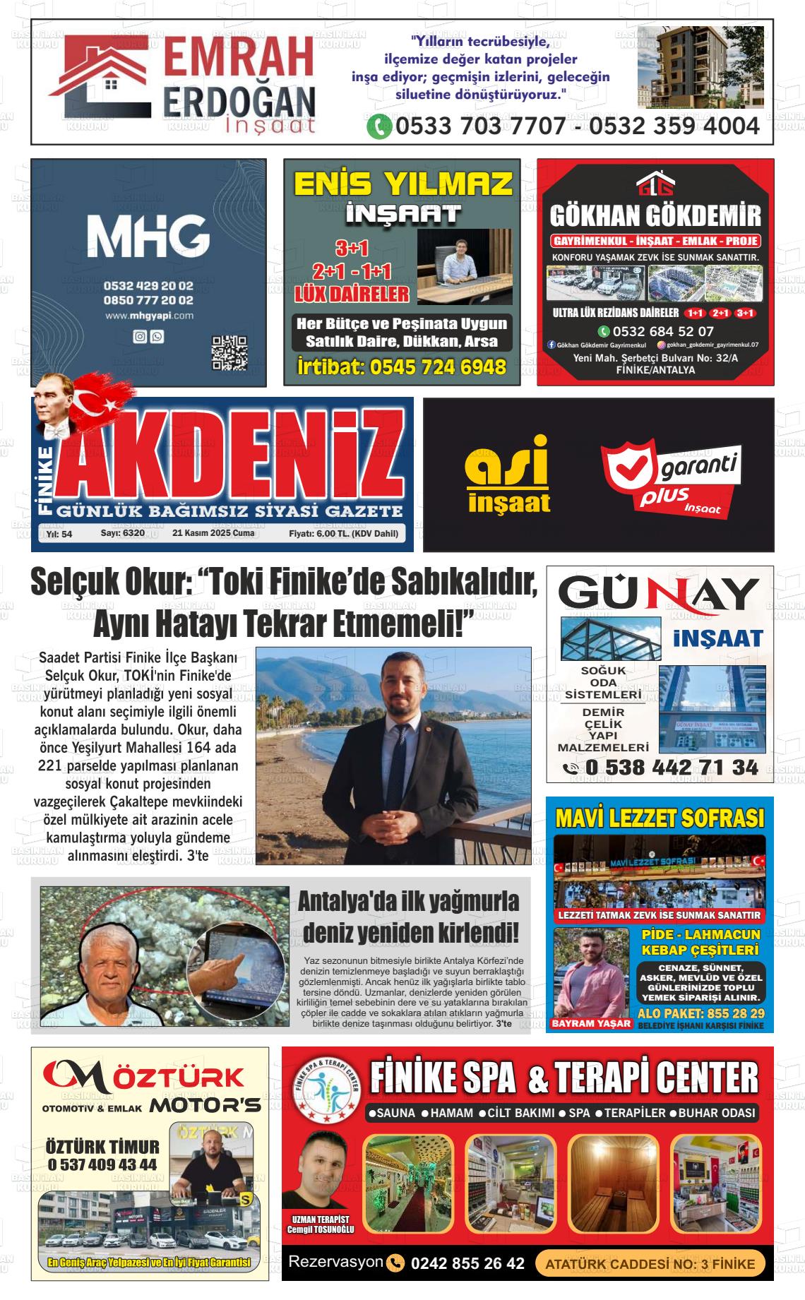 Antalya Yerel Gazeteleri 22 Kasım 2025, Cumartesi Günü Manşeti