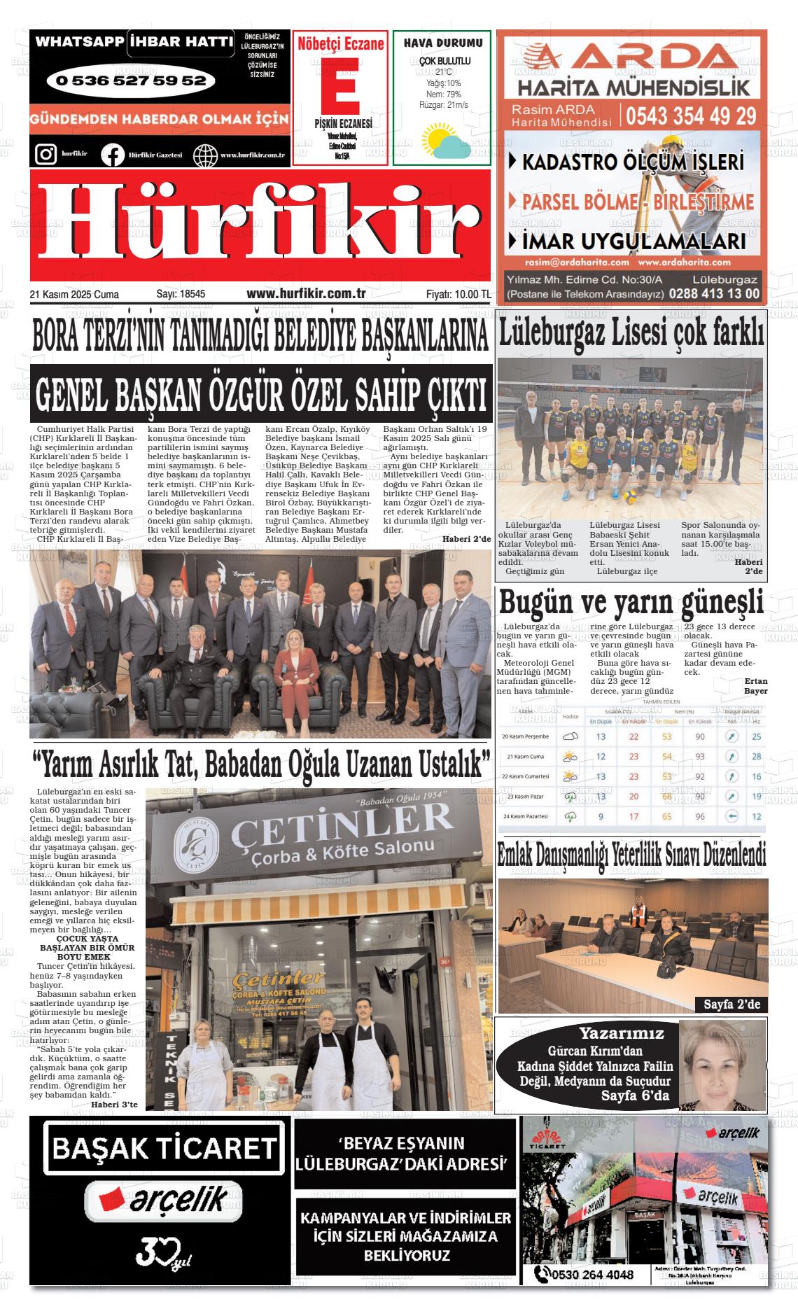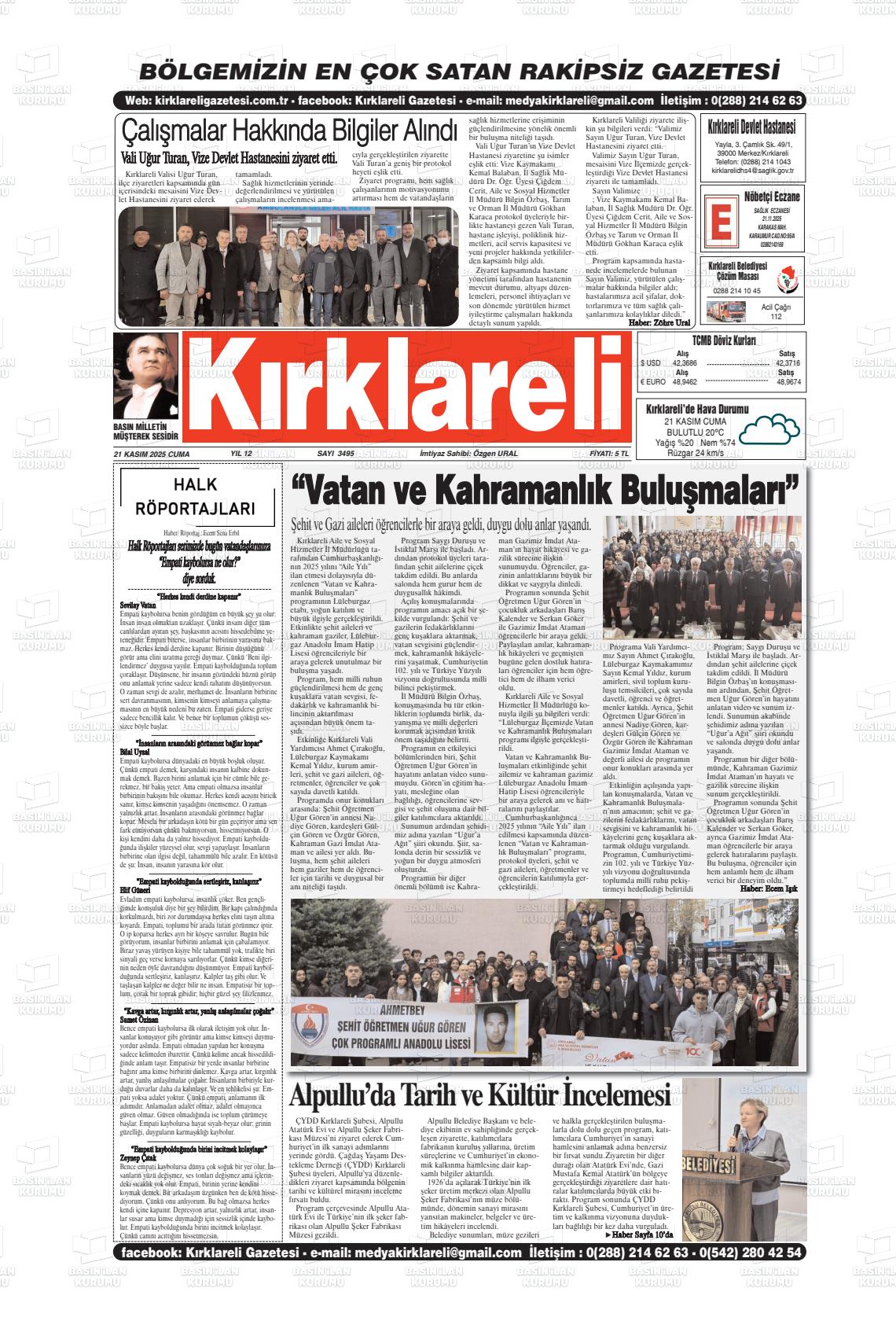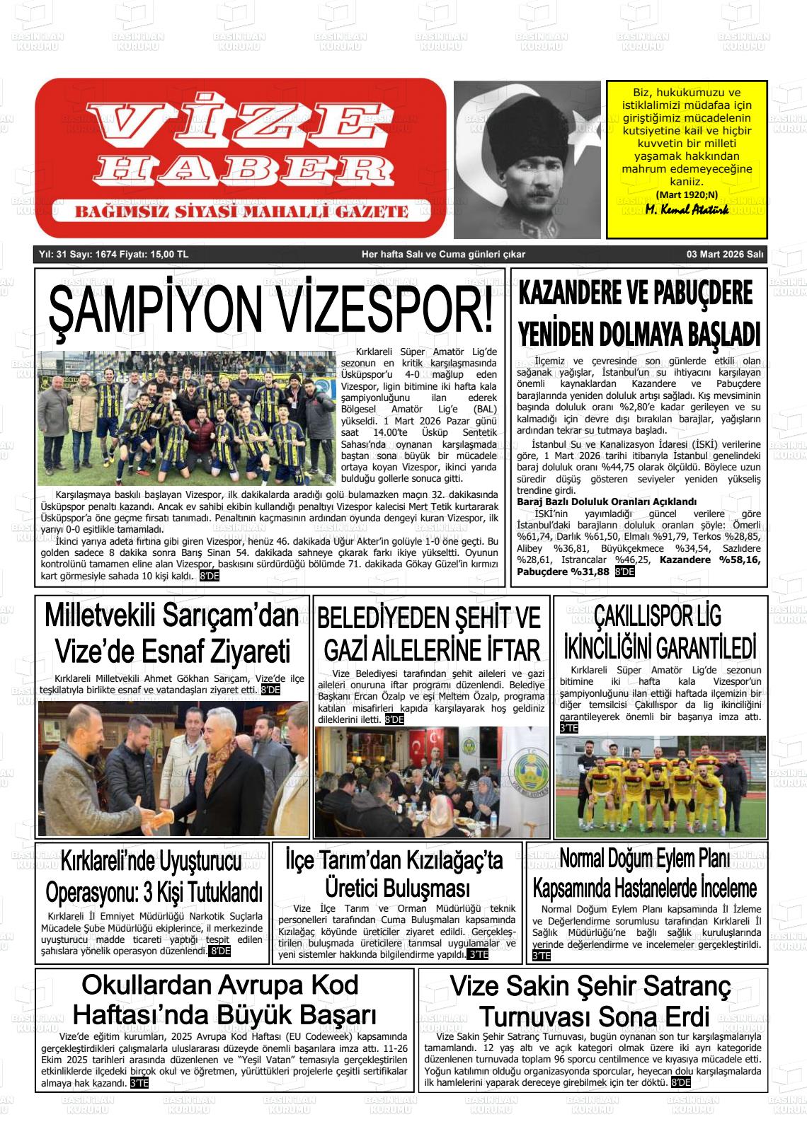 Kırklarelİ Yerel Gazeteleri 03 Mart 2026, Salı Günü Manşeti