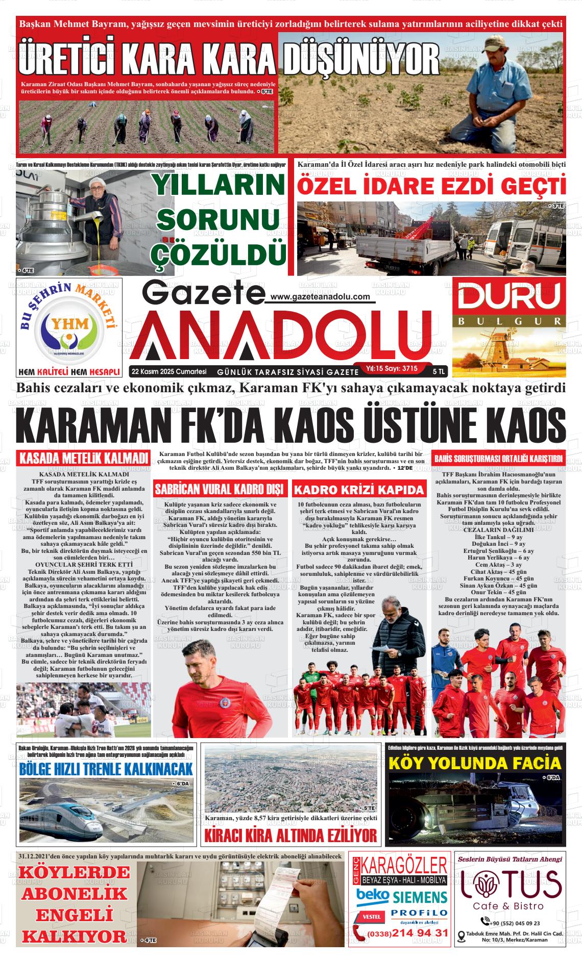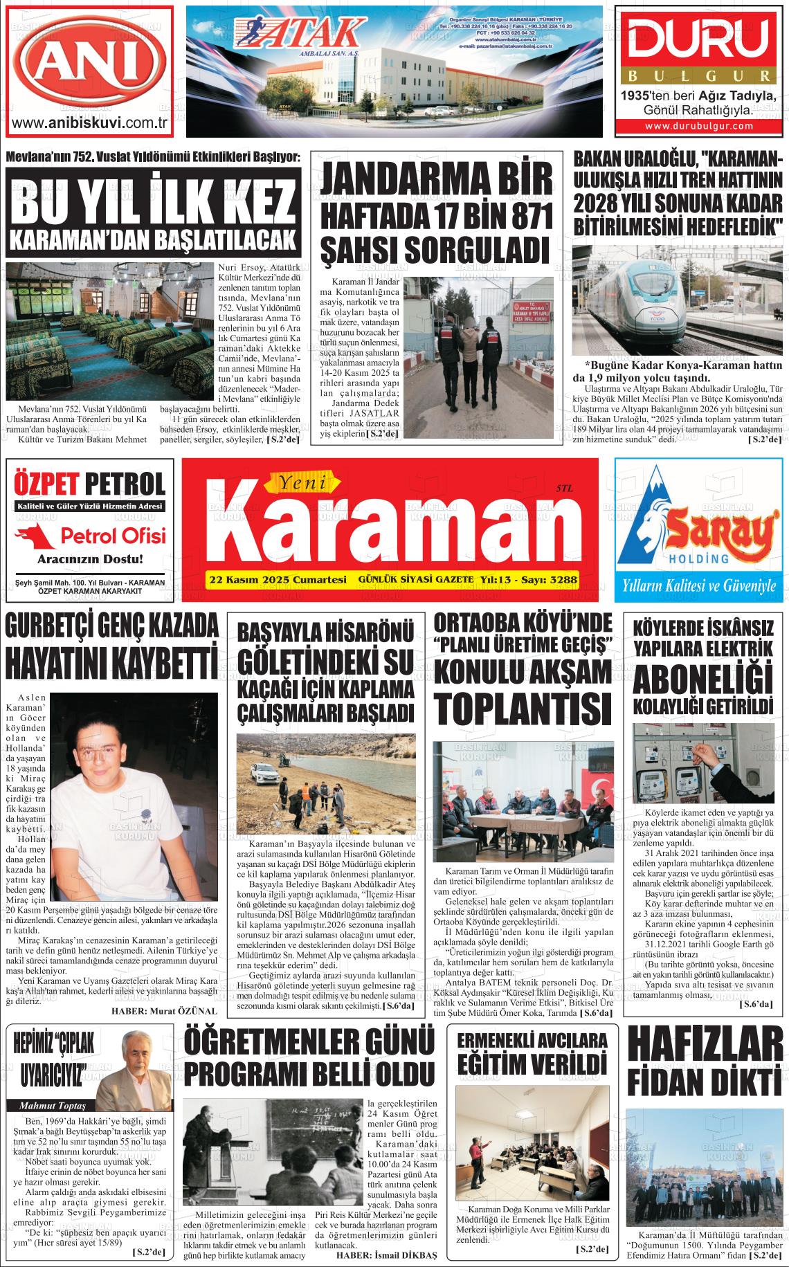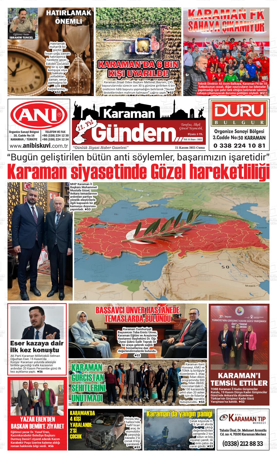 Karaman Yerel Gazeteleri 03 Mart 2026, Salı Günü Manşeti