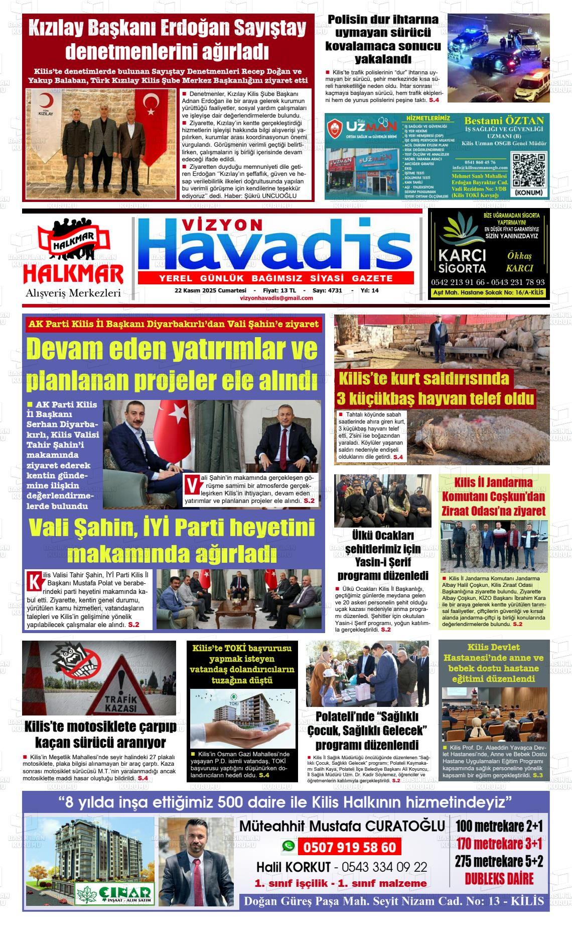Kİlİs Yerel Gazeteleri 03 Mart 2026, Salı Günü Manşeti