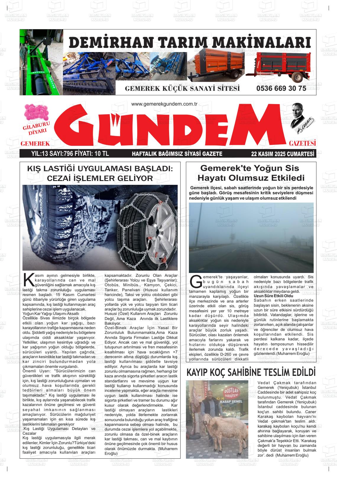 Sİvas Yerel Gazeteleri 22 Kasım 2025, Cumartesi Günü Manşeti